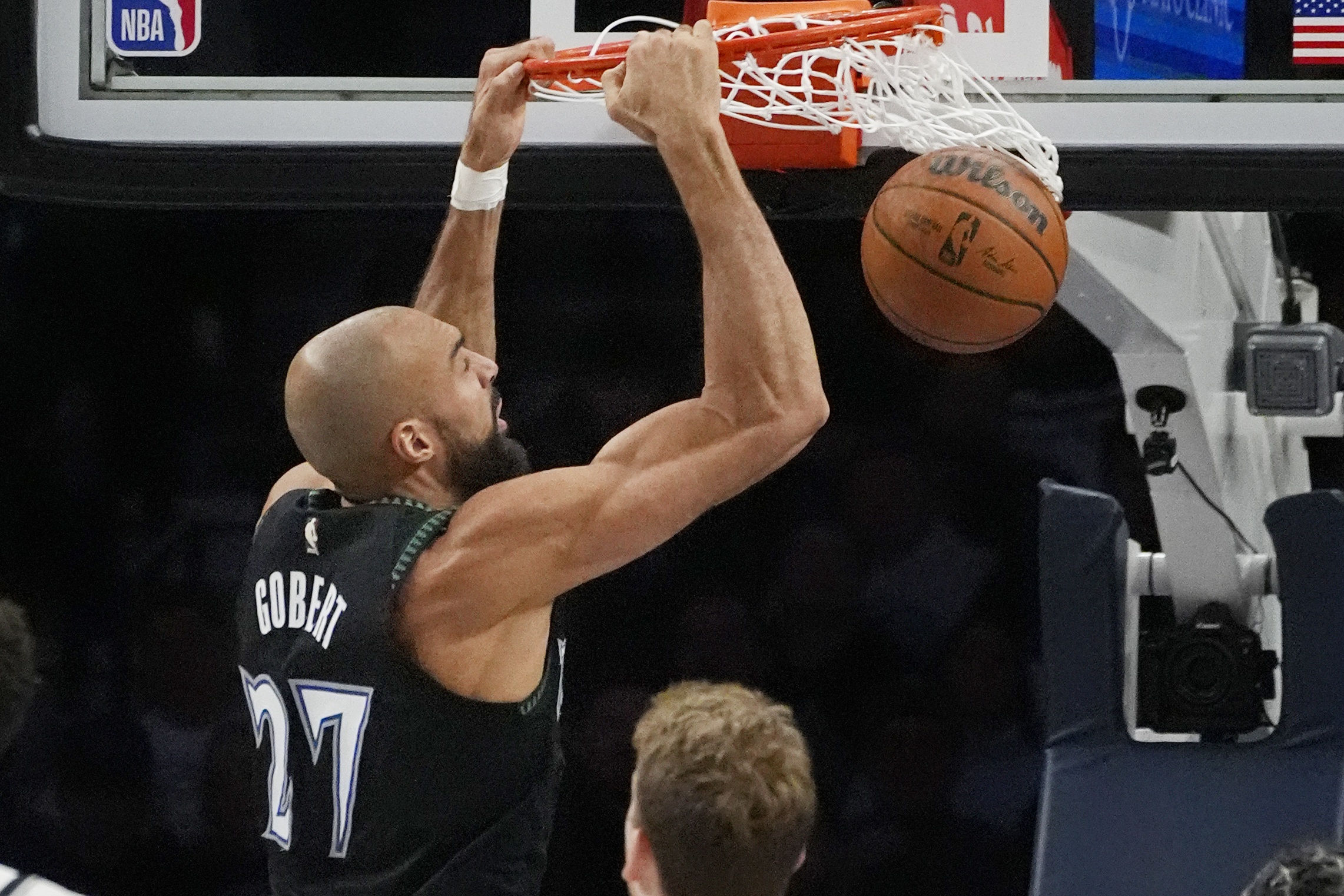 森林狼内线戈贝尔此役在内线依旧存在感十足,进攻十分高效,防守也很给力,就是罚球还是不准。